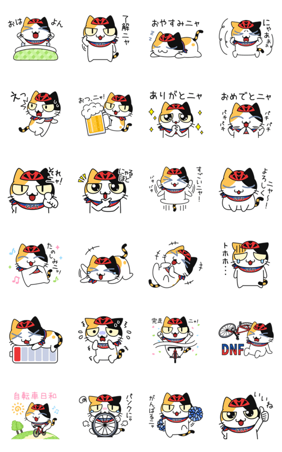 | スタンプ説明 | YouTubeチャンネル「GCTV」公式キャラクター「ガチネコ」のスタンプ!日常のあいさつを中心とした、サイクリスト向けの使いやすいスタンプです! |