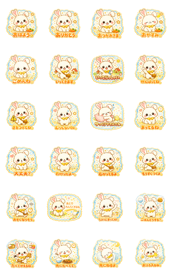 ポップでかわいいうさぎのスタンプです。あいさつや日常の会話など、毎日のトークで使いやすいメッセージを集めました。