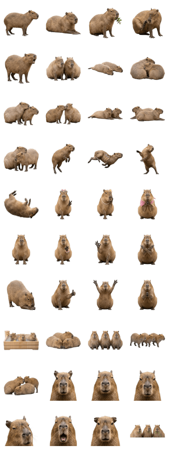 写真風リアル動物もふもふかわいい癒し系ナチュラル温泉ゆるいほのぼの日常使いやすい人気トーク用LINEスタンプ可愛い動物大型げっ歯類のんびり平和系シュール