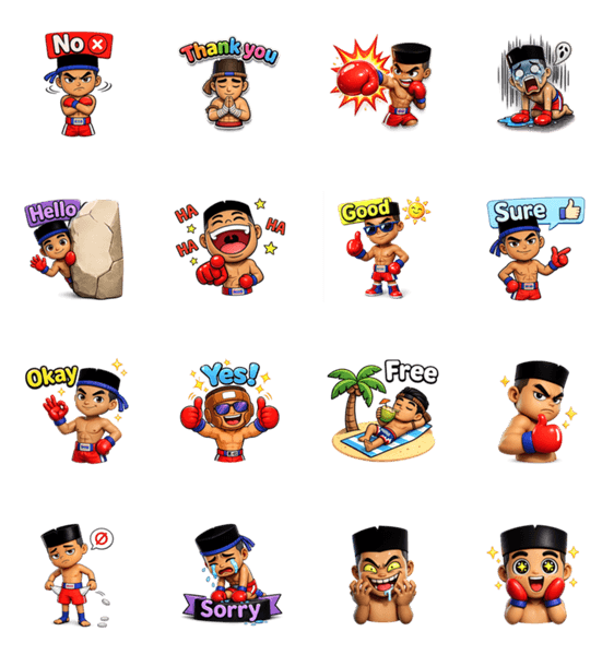 | スタンプ説明 | Hello guys! I am Thai boxer. Jay is my name, I to make your chat is filled good make your word more easier. Let's chat and have fun time together! Go! |