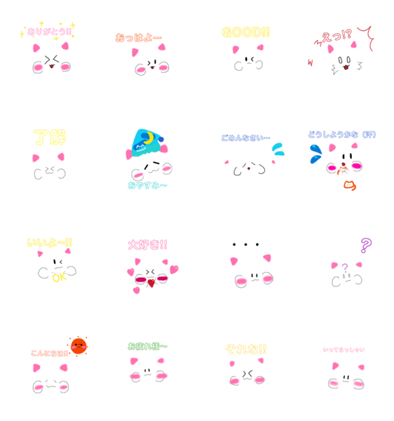 笹の葉のメインキャラ「ねこまる」のスタンプです(=^・・^=)いろんな時に使える16個付き(*^^*)ほっぺの丸い猫ちゃんです(ΦωΦ)