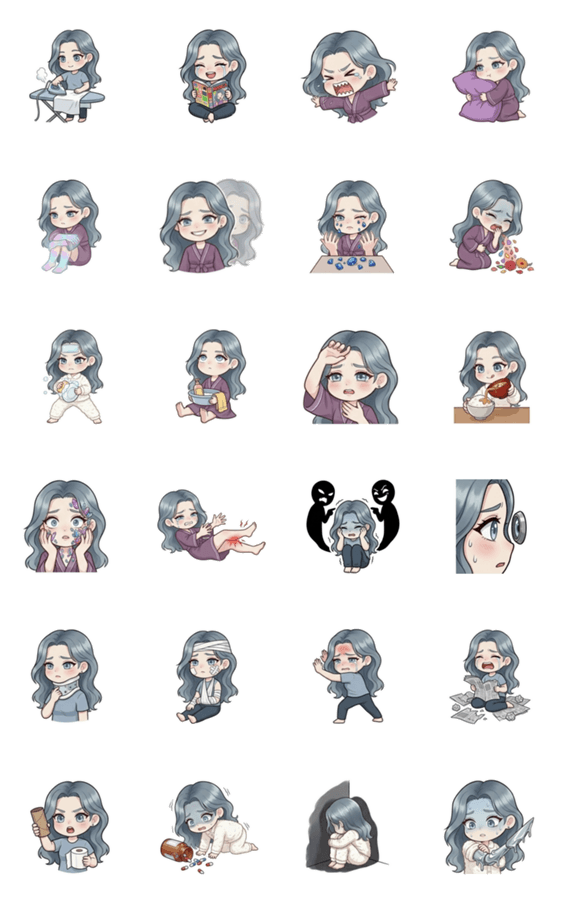 情緒不安定.幻聴.奇病.不安恐怖感(黒髪女子 -LINEスタンプマニア