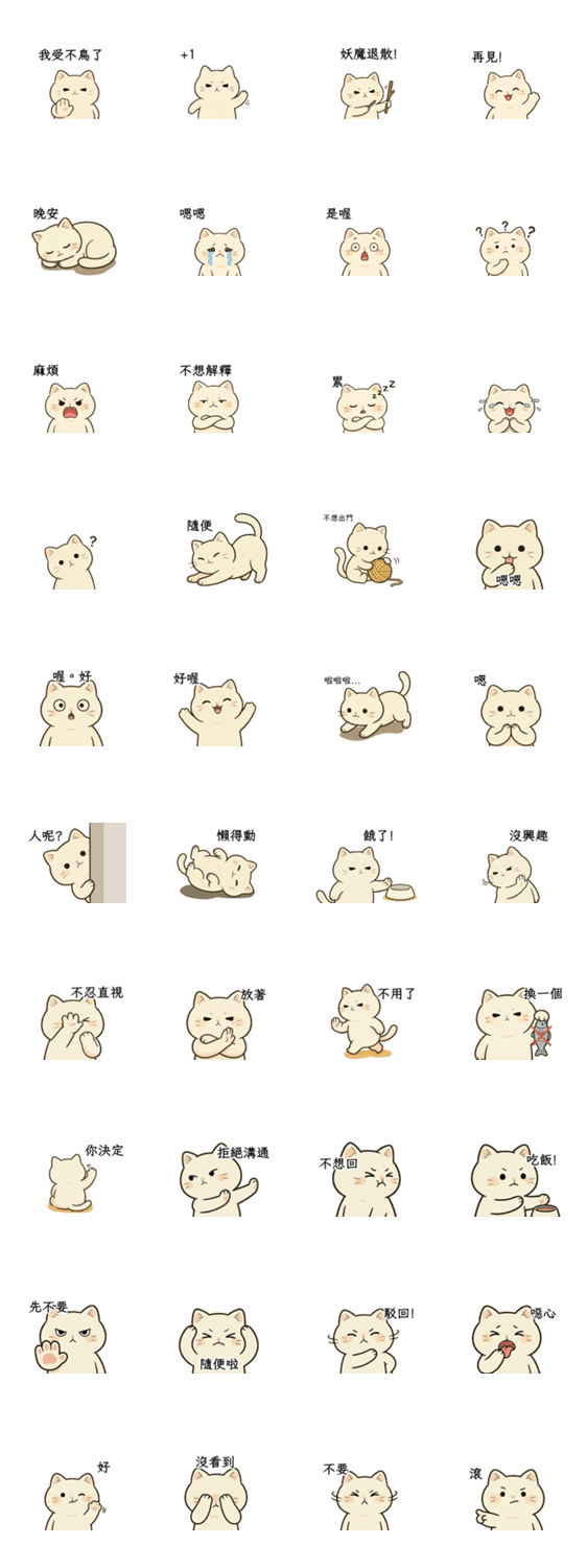 | スタンプ説明 | Not Now Cat In a world where everything is rushed theres a cat that chooses Not yet The Not Yet Cat is the voice of modern life |