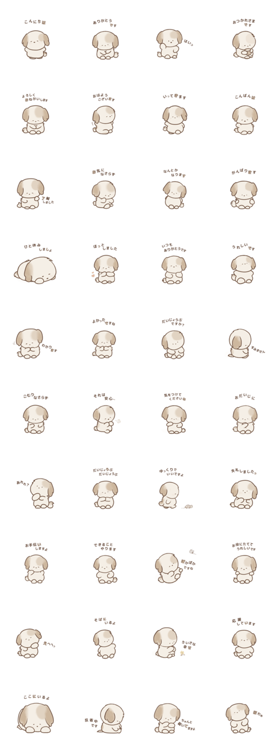 | スタンプ説明 | やさしい敬語で気持ちを届ける、ほわもふ雑種犬ぽてろー。日常のあいさつや気遣いに、そっと寄り添うスタンプです。#敬語 #丁寧 #挨拶 #日常 #犬 #いぬ #やさしい |