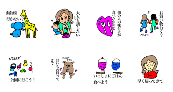 子育て中ママはもちろん、家族で使えるスタンプです