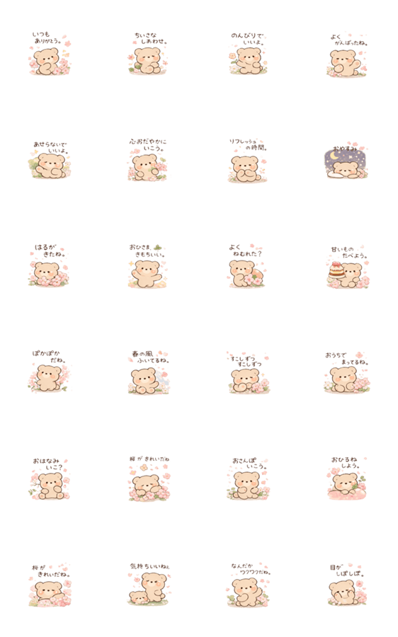 | スタンプ説明 | 癒し効果抜群のフレーズと可愛らしいぽのくまのフォルム。ぽのくまで会話していたら、気持ちがまったりほっこりしてくる。生きづらい世の中「心おだやかにいこう」 |
