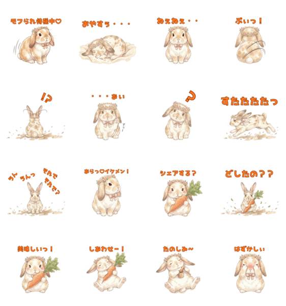 ゆるっと可愛い、ウサギの癒やしスタンプです。 毎日のトークを楽しくする、表情豊かなウサギのマリリンをどうぞよろしくお願いします。