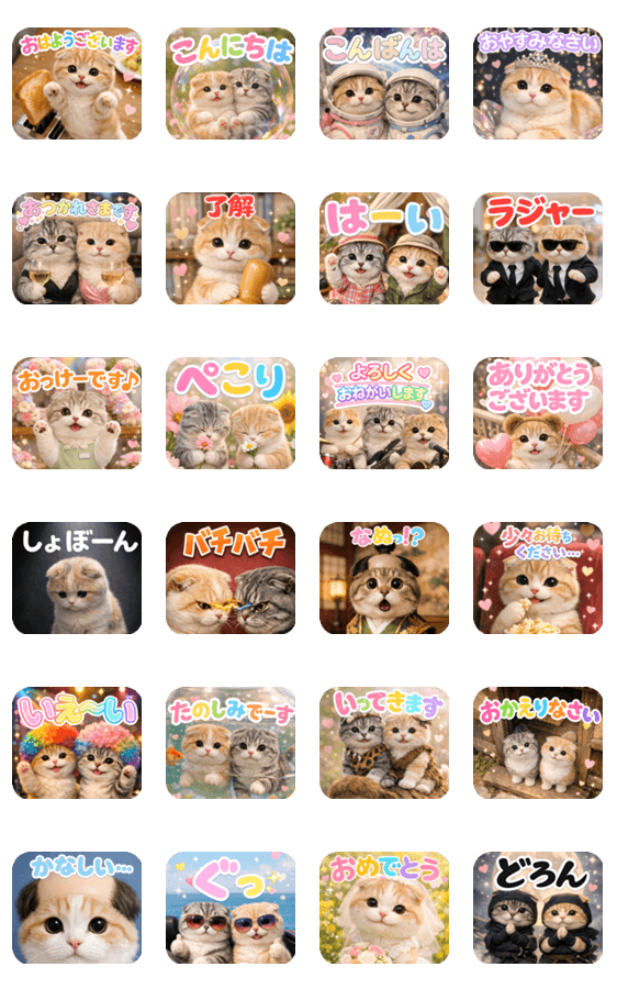 | スタンプ説明 | 飛び出す猫 楽しい日常スタンプ/忍者/キャンプ/うごく/挨拶/可愛い/ポップアップ/実写/写真/リアル/にゃんこ/ねこ/動く/動物/スコティッシュフォールド/山田まぽん作 |
