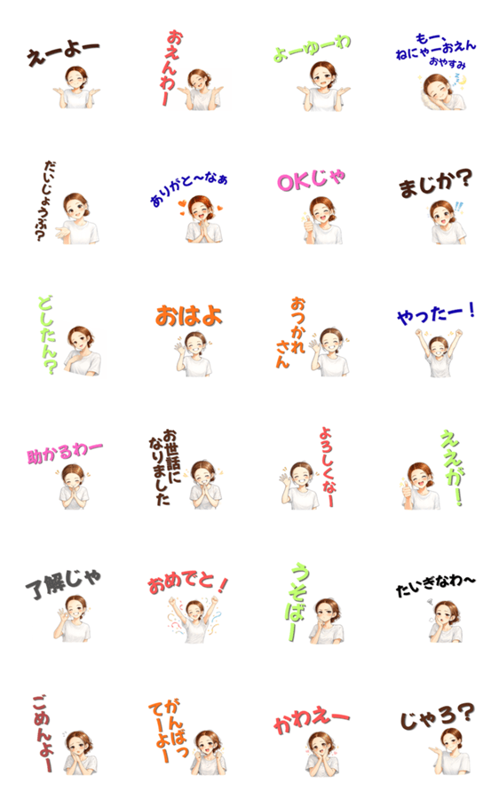 | スタンプ説明 | Stickers of women speaking everyday simple words by Okayama dialect |