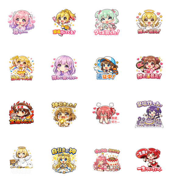 | スタンプ説明 | 推しへの愛を全力で伝えるスタンプ!「尊い」「現場行ってくる」「神引きした!」など、推し活で毎日使えるフレーズを可愛く詰め込みました♡ |