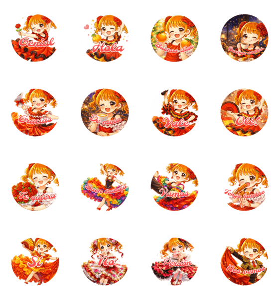 | スタンプ説明 | かわいいツインテールガールのスペイン語スタンプ♡ フラメンコ/ダンス/バラ/ハート/リボン/ドレス/花/かわいい/可愛い/ゆるかわ/女の子/女子/挨拶/日常 |