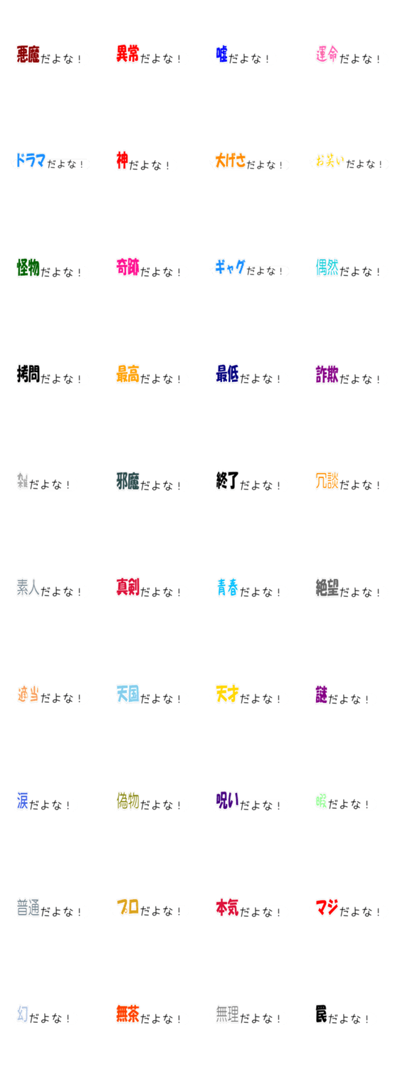 | スタンプ説明 | 吹き出し型で老眼でも読みやすい。様々なシーンのツッコミやリアクションに使える便利な文字スタンプです。 |