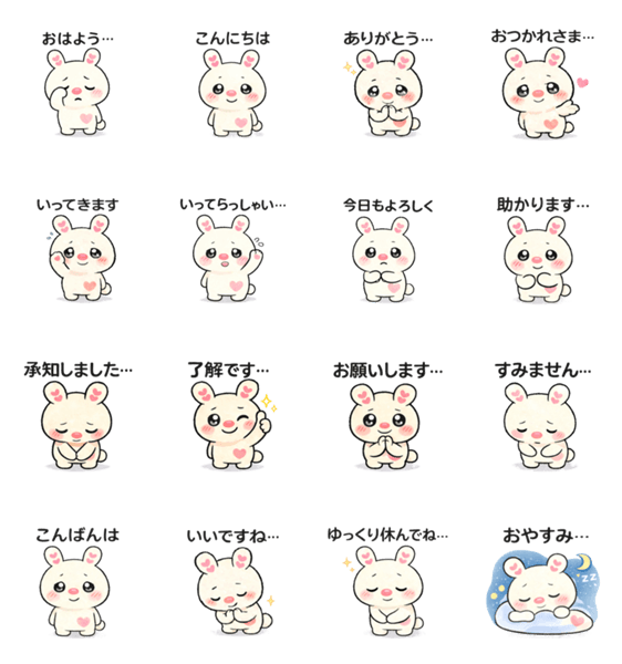 | スタンプ説明 | ちょっと弱気でやさしい生き物「ちいかな」のあいさつスタンプ。 仕事や日常で使いやすい敬語がいっぱい。 やさしく気持ちを伝えたいときにぴったりのスタンプです。 |