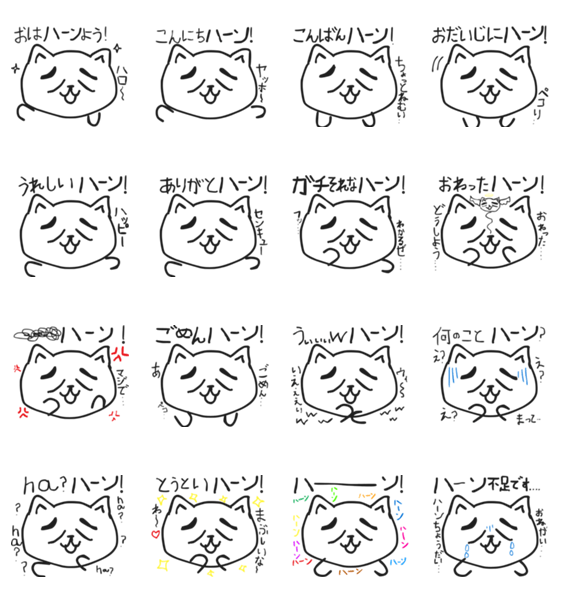 | スタンプ説明 | A white cat sticker that responds with "Haan" in every conversation. |