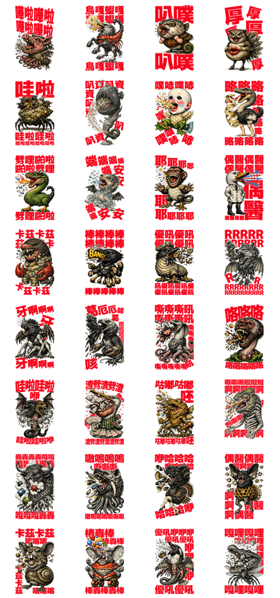 | スタンプ説明 | Screaming and yelling, making no sense at all. Who cares what others say? Just go ahead and scream and yell! These stickers will show up extra large in chats. |