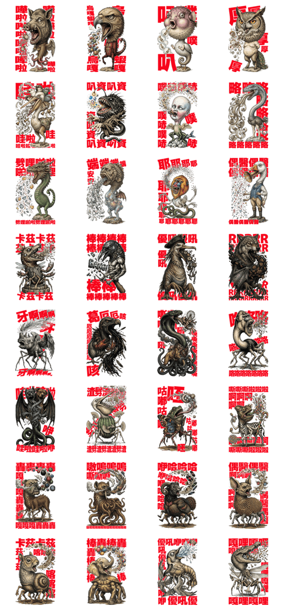 | スタンプ説明 | Screaming and yelling, making no sense at all. Who cares what others say? Just go ahead and scream and yell! These stickers will show up extra large in chats. |