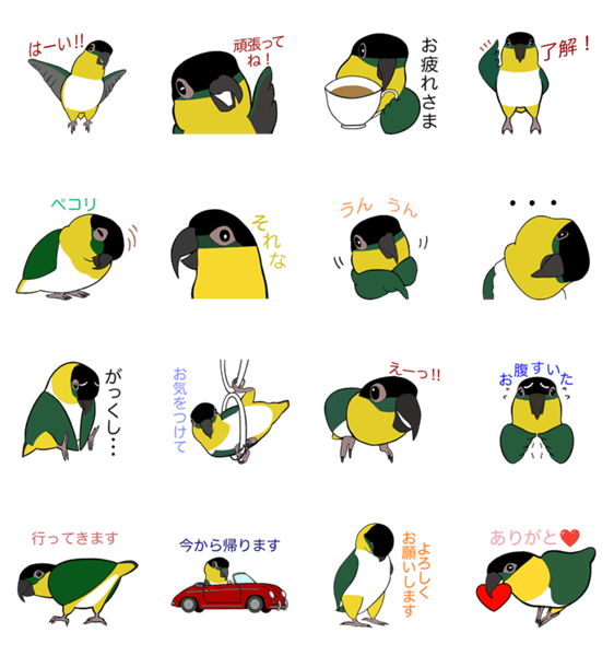 | スタンプ説明 | This adorable, plump Black-headed Caique shows off a variety of expressions.(Everyday conversation/Greetings/Polite language/Useful every day/Bird/Parakeet) |
