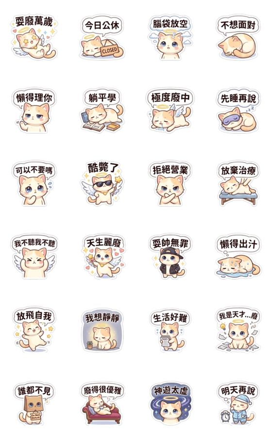 | スタンプ説明 | Meet Angel Kitty, the master of relaxation! This adorable cat shows you how to enjoy a lazy life with style. |