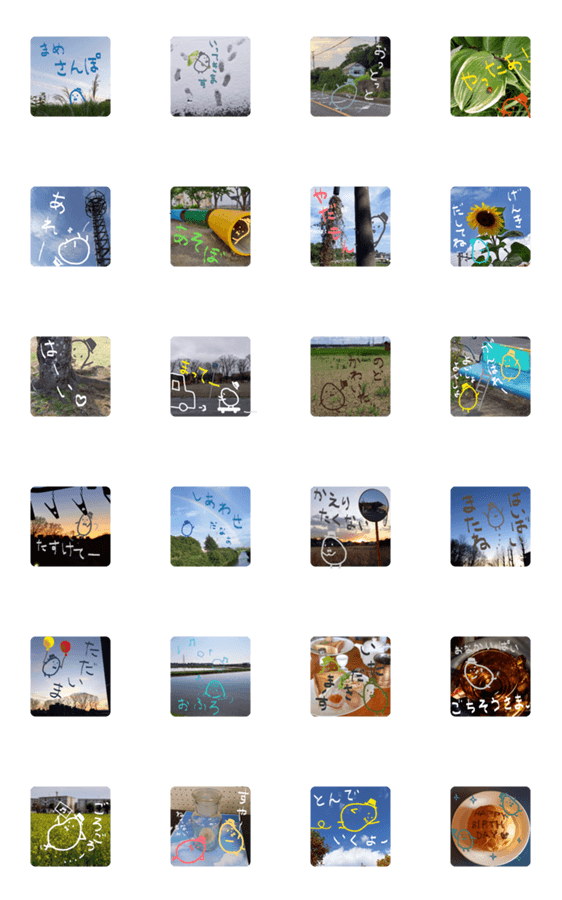 | スタンプ説明 | LINEスタンプメーカーでつくったスタンプです。風景にまめちゃんをらくがきしたよ。おさんぽのおともに。 |