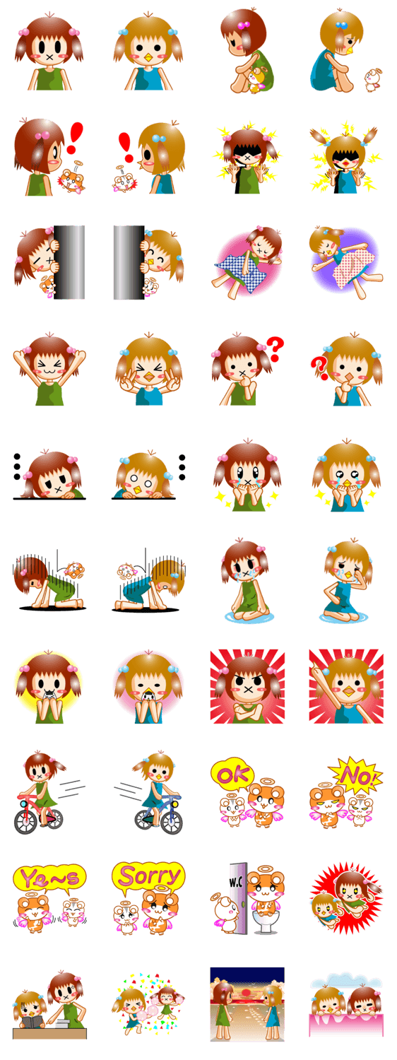 K子とM子姉妹、ハムスターのミュウとピコの基本セットです。