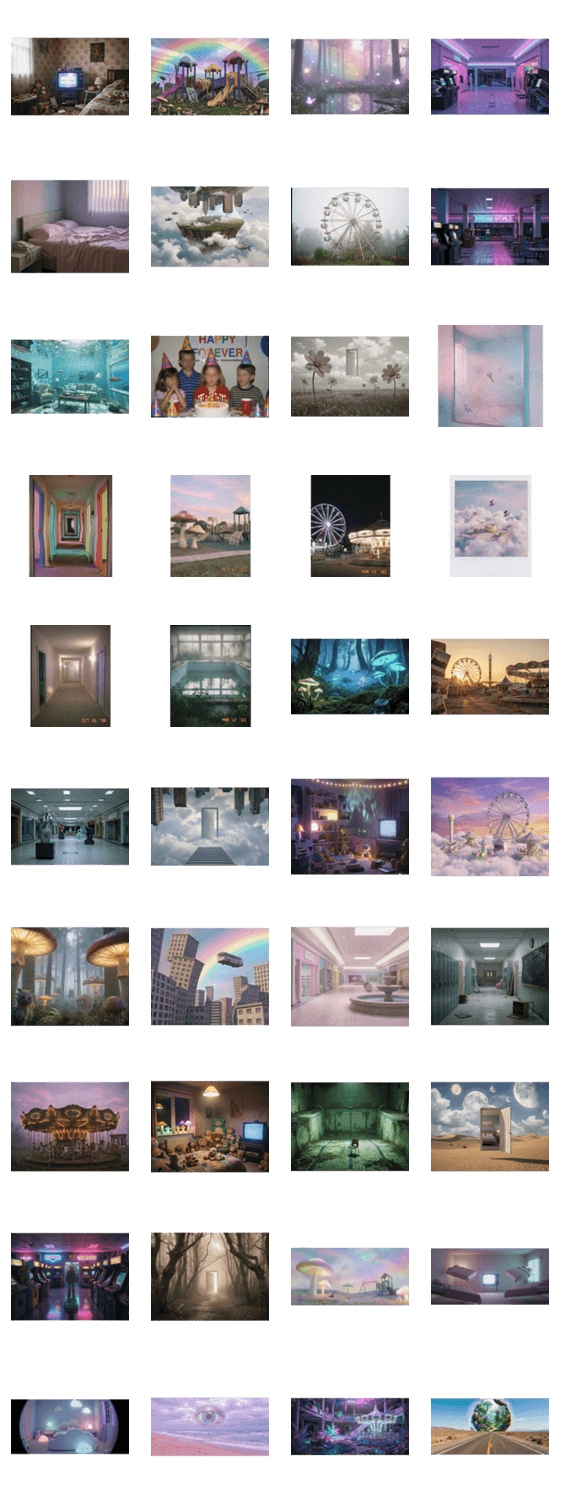 | スタンプ説明 | 写真風 リアル 夢 幻想 ノスタルジー 不気味 エモい レトロ シュール 非現実 空間 違和感 深夜 インターネット文化 aesthetic 人気 不思議 トーク用 LINEスタンプ 夢みたい |