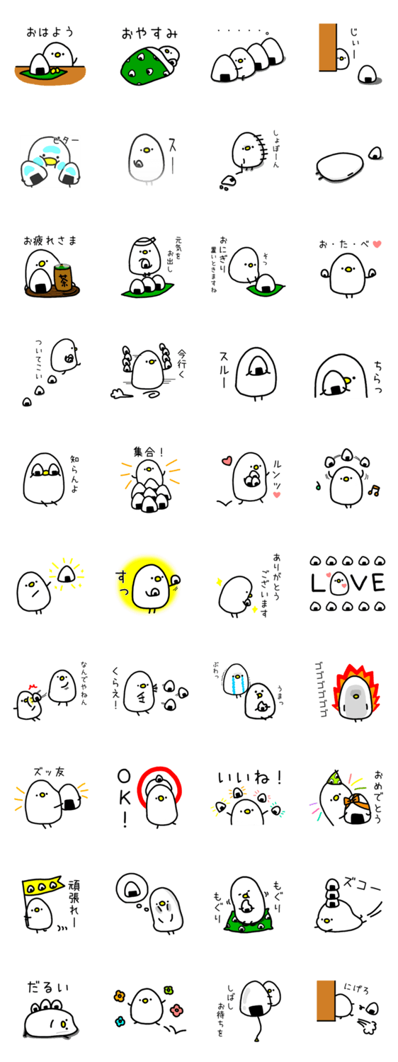 おにぎりが大好きすぎる白いヒヨコ -LINEスタンプマニア
