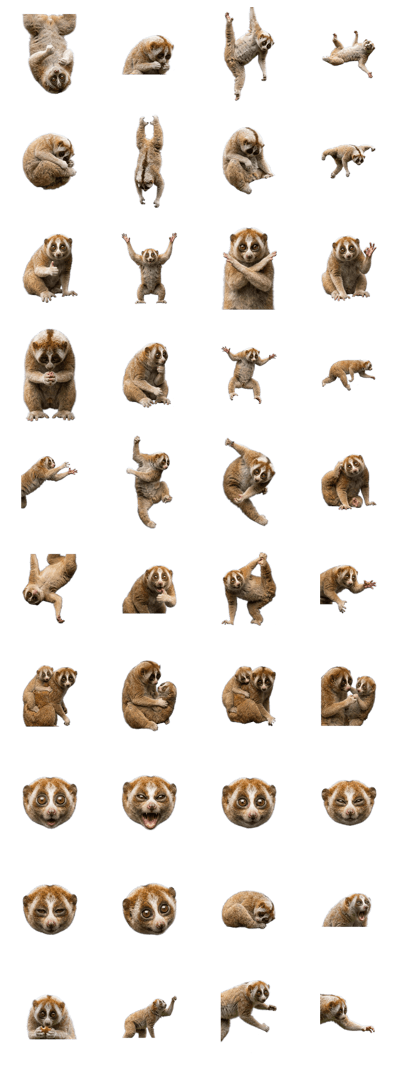 | スタンプ説明 | 写真風リアル動物霊長類夜行性大きな目ゆっくり動くかわいい癒し系もふもふナチュラル自然観察人気日常トーク用LINEスタンプ可愛い動物小動物愛らしい珍しい動物 ※このスタンプはトークルームで大きく表示されるBIGスタンプです。 |