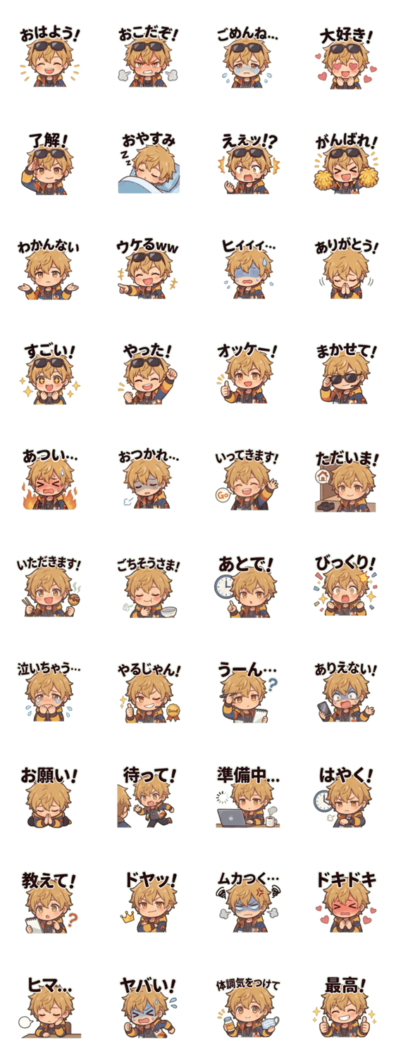 | スタンプ説明 | 架空のオリジナルキャラクター「日向陽太」(21歳・DJ/MC)のオリジナルスタンプです。 |