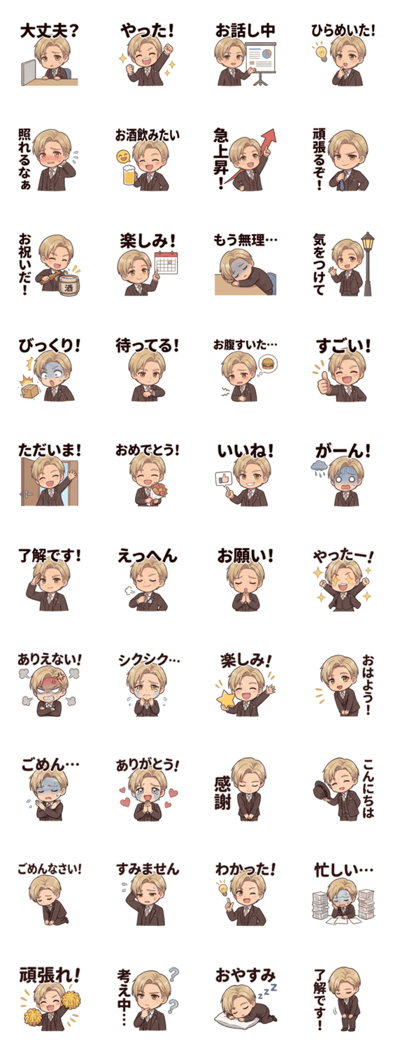 | スタンプ説明 | 架空のオリジナルキャラクター「一ノ瀬颯」(28歳・高級ホテル総支配人補佐)のオリジナルスタンプです。 |