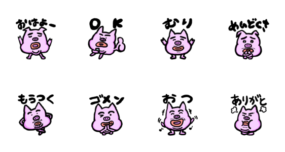 | スタンプ説明 | とろ火で生きてるゆるい豚のスタンプです。だるい日や気を抜きたいときに、ちょうどいい温度で使えます。強すぎない表情で、日常のやりとりにそっと寄り添います。 |