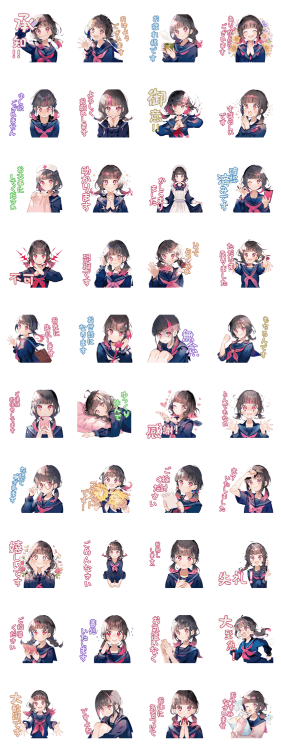 | スタンプ説明 | 制服の女の子の丁寧なスタンプ。先輩や上司に!挨拶/仕事/日常/学生/清楚/萌え/推し/大人/敬語/女子/職場/可愛い |