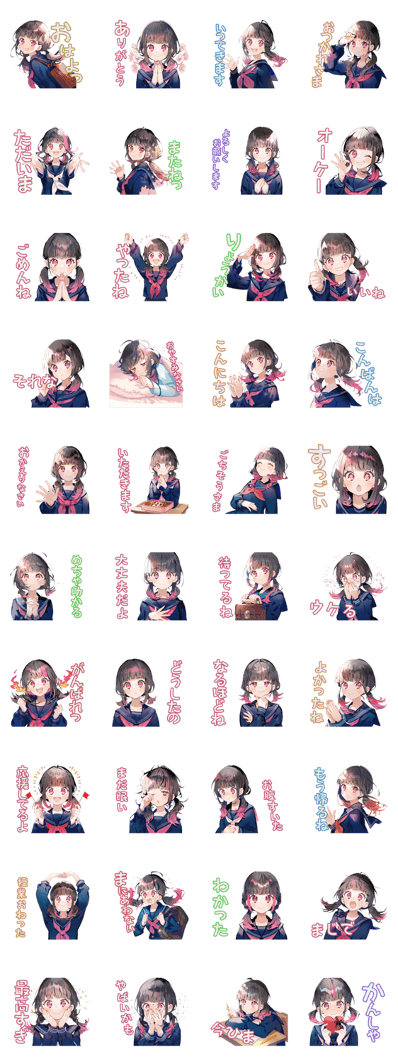 | スタンプ説明 | 制服の女の子が元気よく挨拶する可愛いスタンプです!/制服/女子/学生/JK/挨拶/日常/毎日/使える/かわいい/シンプル/ゆるい/友達/家族/普段使い/萌え |