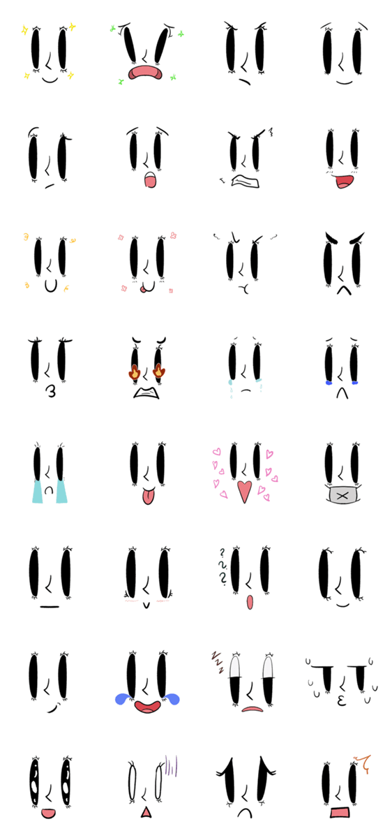 スタンプ説明 喜怒哀楽を大きな目で見せる
