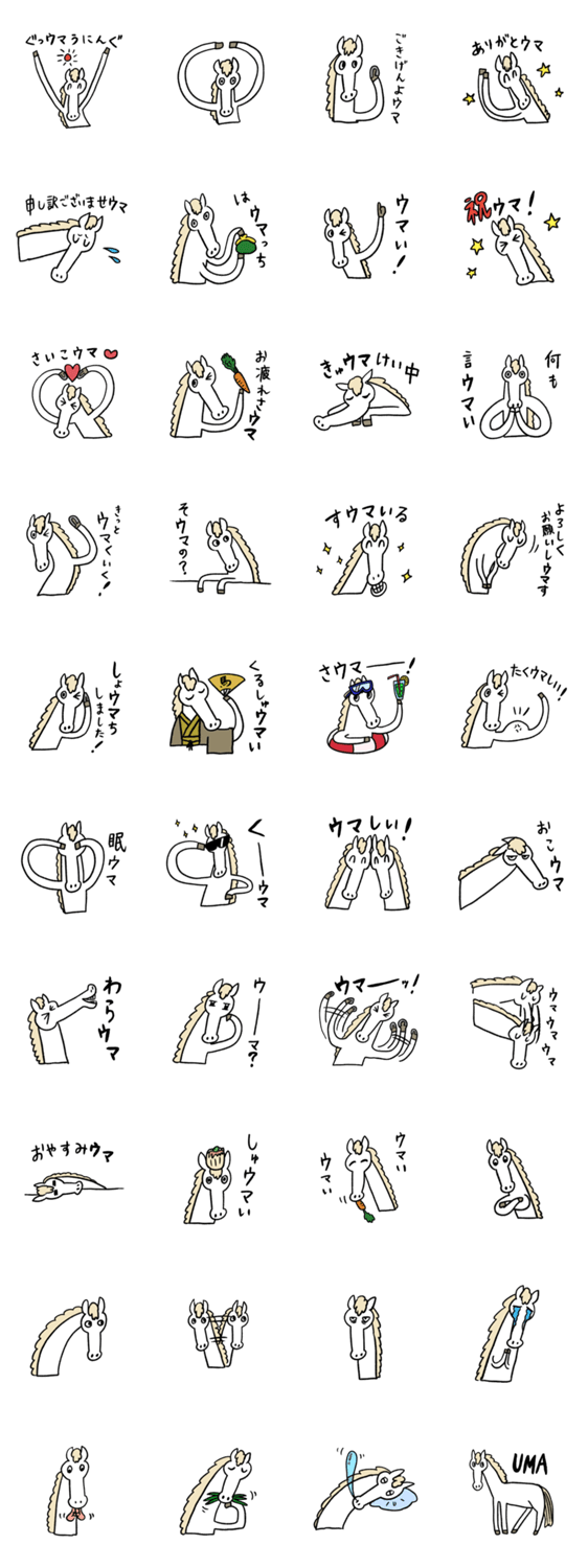| スタンプ説明 | ウマいことを言いたいであろう白いウマです。 |
