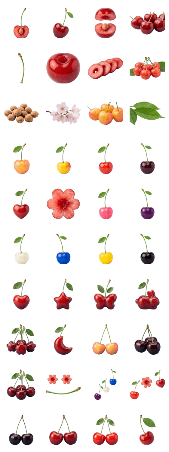 | スタンプ説明 | 写真風リアル果物フルーツ赤い甘いかわいいナチュラル食べ物デザートみずみずしい人気日常トーク用LINEスタンプ可愛いおやつ双子チェリー美味しい |
