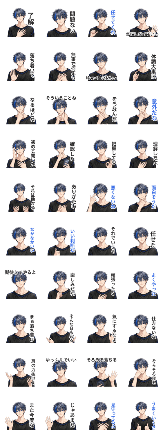 | スタンプ説明 | ちょっとクール。でもちゃんと優しい。 落ち着いた雰囲気の大人男子が、日常の会話をさりげなく彩ります。 |