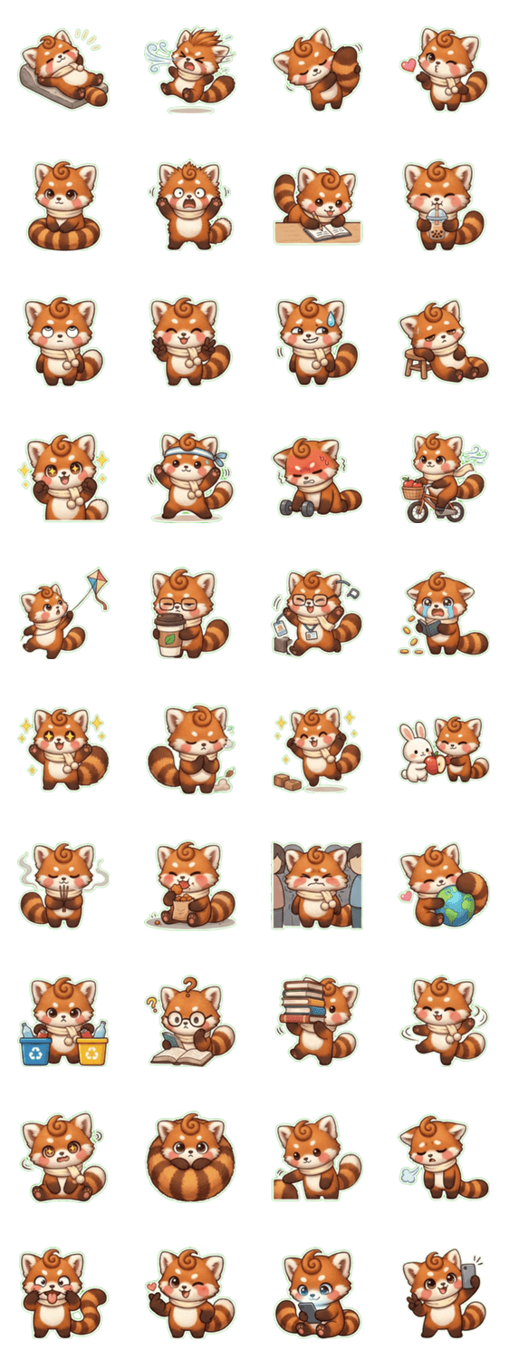 | スタンプ説明 | ふわふわレッサーパンダ「巻巻」の4月をお届け!こどもの日パーティー、春のお参り、お祭り、アースデーの植樹、本の上で居眠り…まんまるボディと大きなしっぽで |