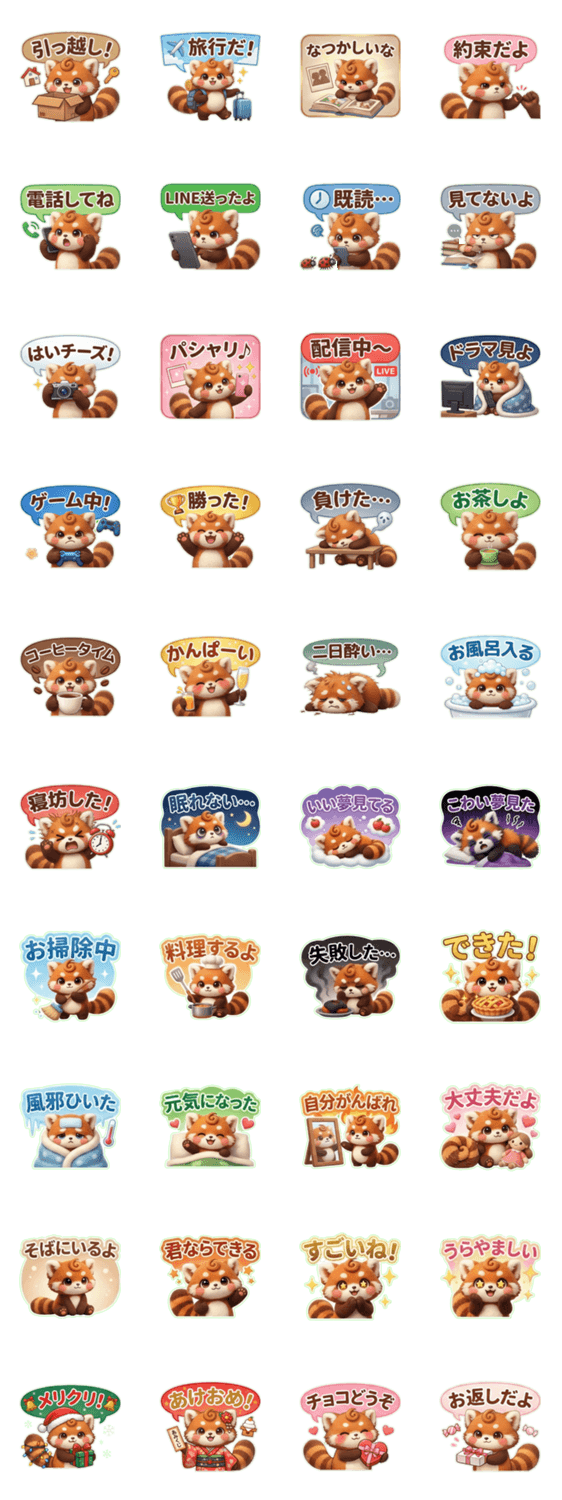 | スタンプ説明 | もふもふレッサーパンダ「スーピー巻巻」と過ごす4月!こどもの日のパーティー、お墓参りの感動、お祭りでの全力疾走、アースデイのエコ活動、読書の日のうたた寝 |