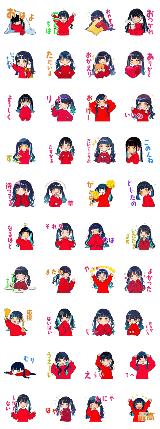 | スタンプ説明 | 前髪ぱっつんでツインテールのちびっこ女の子の挨拶スタンプ。/日常/毎日/使える/かわいい/シンプル/ゆるい/癒し/友達/恋人/女子/学生/推し/萌え/会話 |