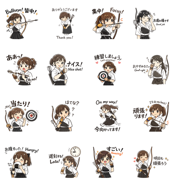 | スタンプ説明 | 凛とした美しさと、ゆるっとした日常のギャップが魅力の女子弓道部LINEスタンプが登場! 弓道ならではの表現から、普段使いしやすいフレーズまでしっかり収録。 |