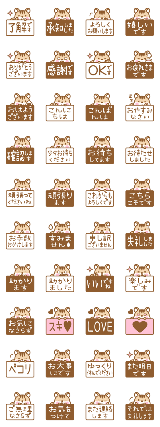 | スタンプ説明 | 簡単な返信でも使いやすい、シマリスの「シマさん」がボードからチラッと顔を出す、日常で使えるシンプルな敬語のスタンプです。了解です / お疲れさま など。 |