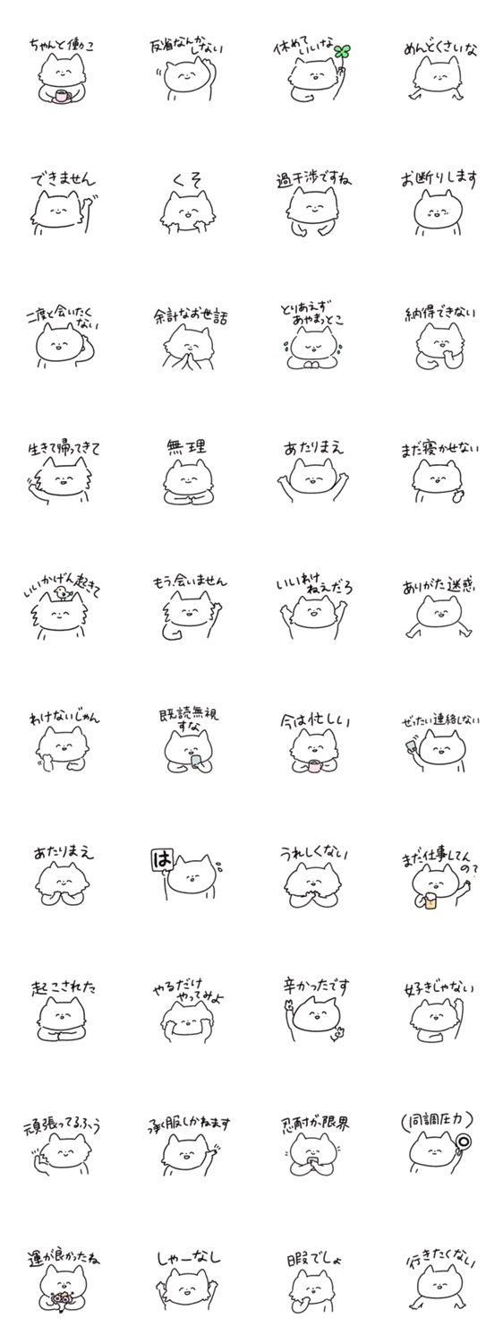 | スタンプ説明 | やさしい白ねこの、正直なつぶやき。 たくさん使ってね! |