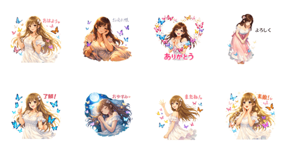 スタンプ説明 蝶々と美女のスタンピ