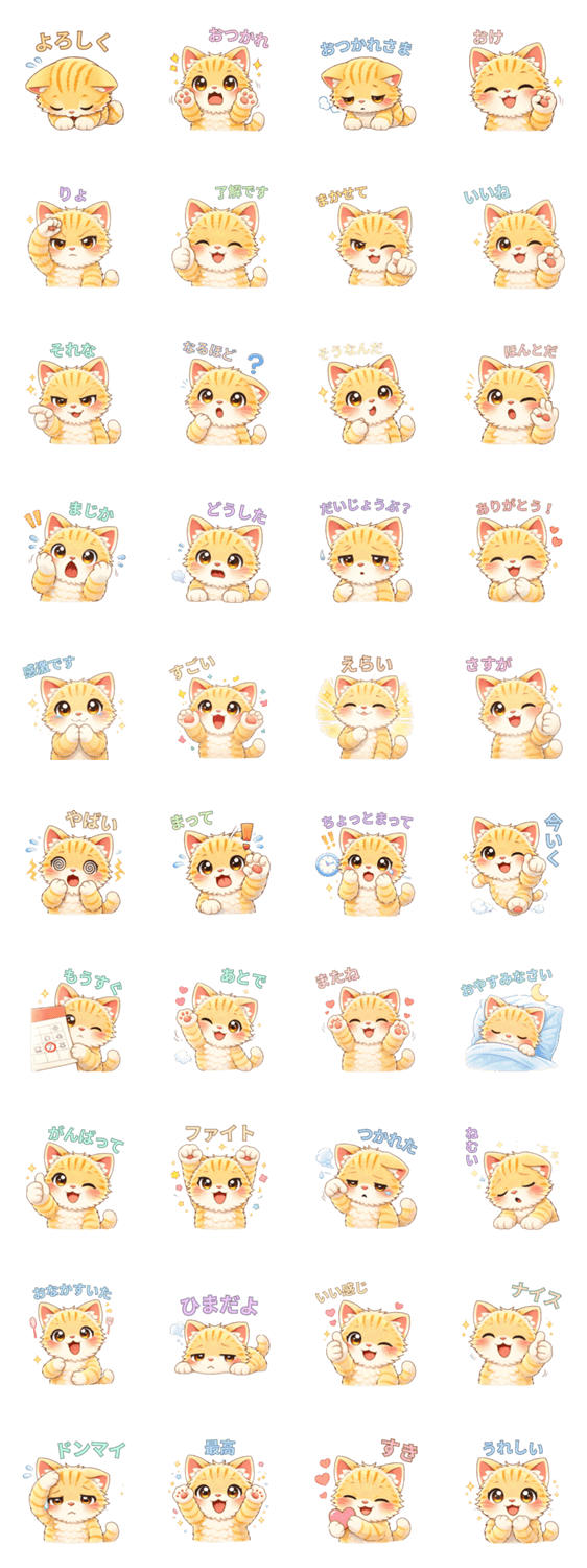 | スタンプ説明 | 毎日使えるゆるかわ猫スタンプ第2弾。日常トーク、返信、リアクション、あいさつに便利。かわいい・シンプル・癒し系・日常会話・猫好き向けの使いやすいスタンプです。 |