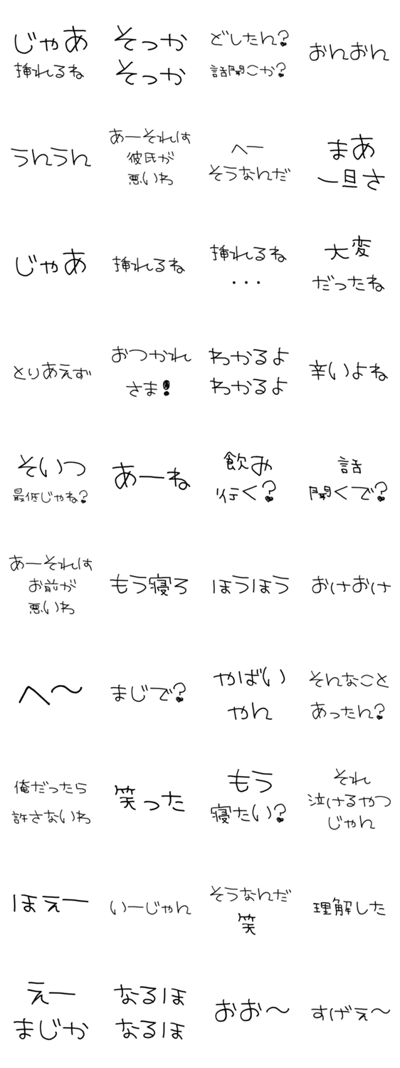 | スタンプ説明 | 日常/夫婦/文字/変態/ウケる/下ネタ/かわいい/嫁/旦那/敬語/甘め/ツンデレ/返信/既読/毎日/仲良し/スケベ/下品/愛/恋/おーい/イチャラブ/好き/カップル/褒める/こども |