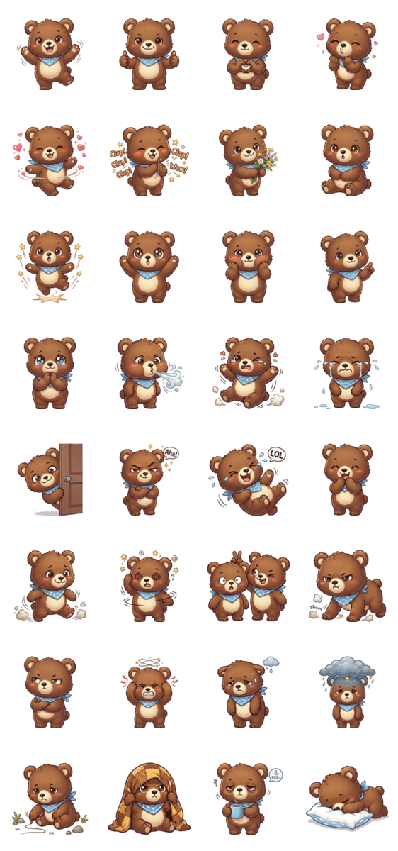 | スタンプ説明 | An adorable, cuddly little bear expressing emotions through cute gestures, perfect for everyday chats without words. |