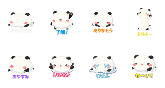| スタンプ説明 | お餅のように柔らかい「もちパンダ」のスタンプです。もちもち伸びたり溶けたり、可愛いパンダの8種類セットです。 |