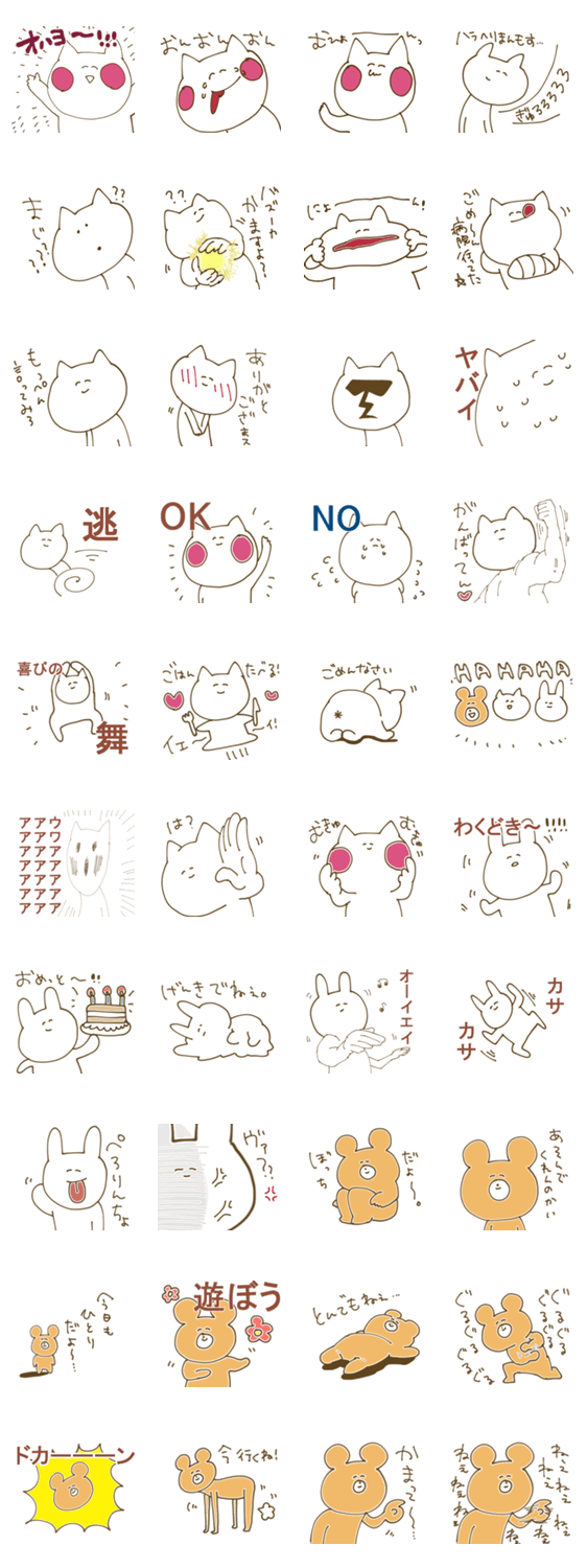 かわいいねこさんとかわいいうさぎさんと寂しがりやのくまさんのスタンプです いっぱい使ってね!