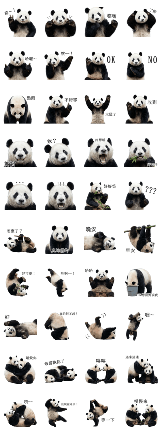 | スタンプ説明 | 使いやすいかわいいシュール面白い癒やし動物ぱんだ人気おすすめ便利実用定番フレーズ現地海外友達家族カップル留学駐在仕事ビジネス筆談翻訳通訳台北高雄台南九份小龍包夜 |