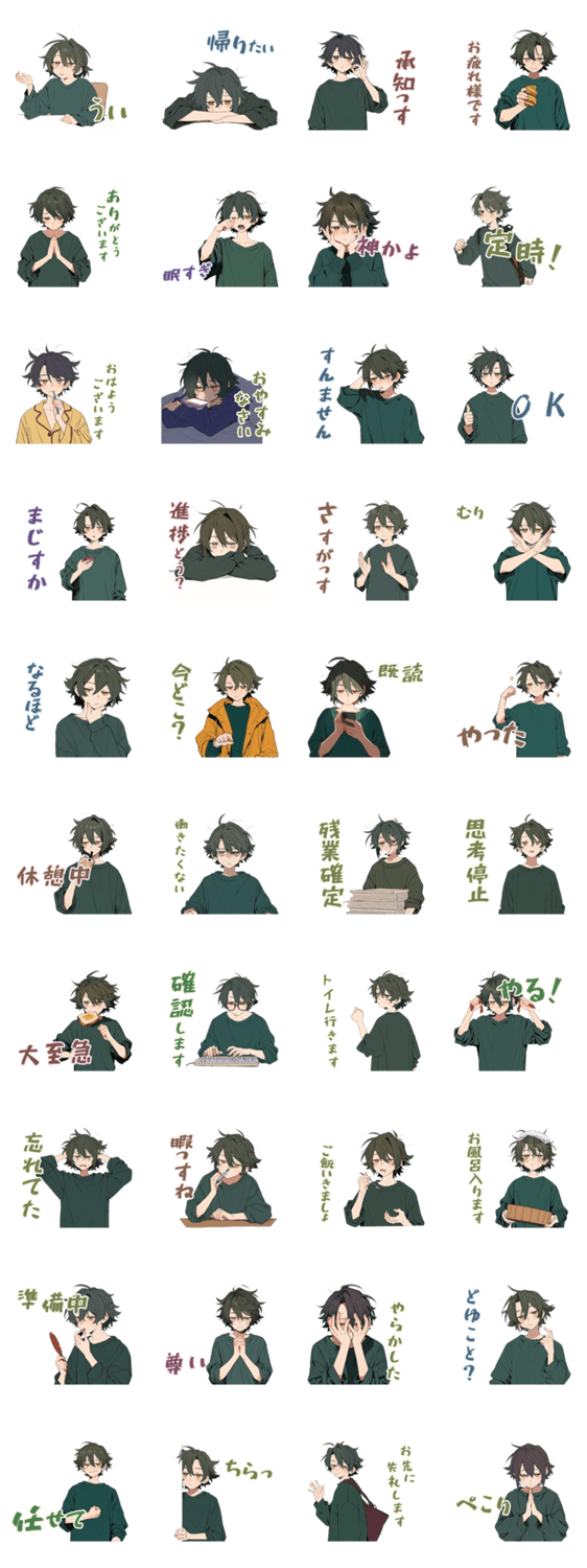 | スタンプ説明 | 会社や友達に使える、やる気のない女の子。後輩/だるい/塩対応/社会人/仕事/挨拶/日常/女子/かわいい/ゆるい/大人 |
